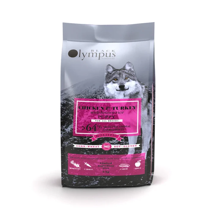 Black Olympus Puppy עם עוף ואורז חום הוא מזון יבש הוליסטי, עשיר ברכיבים טבעיים ובריאים, שפותח במיוחד לגורי כלבים מכל הגזעים.