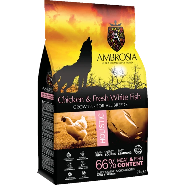 אמברוסיה מזון הוליסטי היפואלרגני לגורים ללא דגנים עוף ודגים לבנים 6 ק"ג