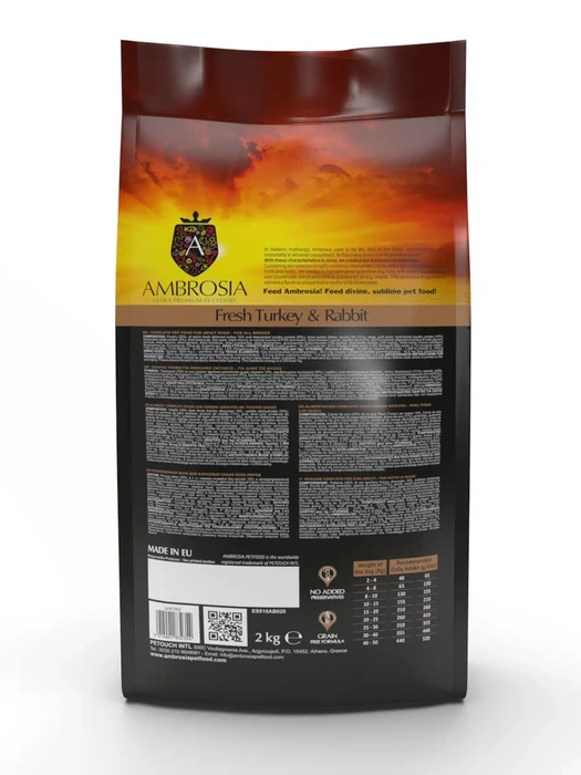 אמברוסיה מזון הוליסטי היפואלרגני לכלבים בוגרים ללא דגנים ארנבת והודו 12 ק"ג