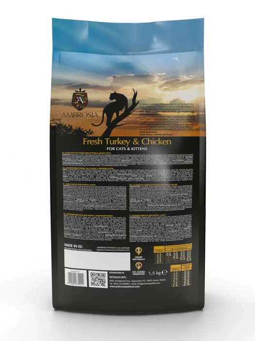 אמברוסיה מזון לגורים וחתולים בוגרים הודו ועוף 5 ק"ג