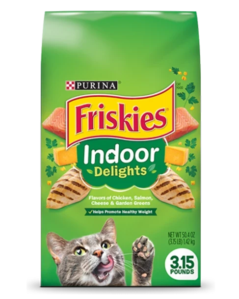 תירס טחון, קמח גלוטן תירס, קמח שיירי עוף, קמח בשר ועצמות , קמח כוספת סויה, שומן בקר מוגן על ידי טוקופרולים מקור טבעי לויטמין E, קמח שיירי הודו, אבקת תאית, מצוי כבד, קליפות סויה, תמצית מאלט , חומצה פוספורית, מלח, אבקת גבינה, אשלגן כלוריד, כולין כלוריד, צבעי מאכל (צהוב מס’ 6, צהוב מס’ 5, אדום מס’ 40, כחול מס’ 2, ואחרים), פתיתי פטרוזיליה , קלציום קרבונאט, טאורין, אבץ סולפאט, ברזל סולפאט, ויטמין E, ניאצין, מנגן סולפאט, ויטמין A, קלציום פאנטוטנאט, תיאמין מונוניטראט, נחושת סולפאט, ריבופלאבין,ויטמין B12 , פירידוקסין, חומצה פולית, ויטמין D3 , קלציום יודאט, ביוטין, קומפלקס מנדיון סודיום ביסולפיט(מקור לפעילות ויטמין K1), סלניום.