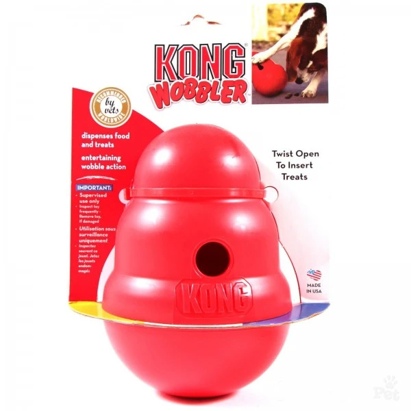 ה-Wobbler בעיצוב הקלאסי של KONG הוא צעצוע מהנה שמשלב פעילות עם פיזור מזון וחטיפים.