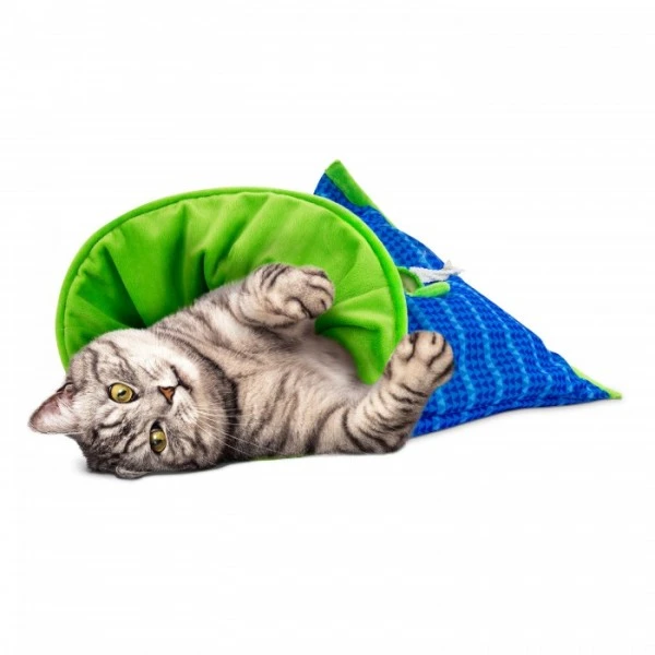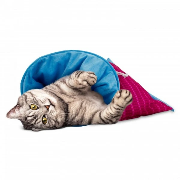 החתול שלך יגרגר בהנאה! שק ייחודי המשלב את הנאת המשחק עם מיטה נעימה ופרטיות לחתול שלך. תחתית השק מכילה חומר מרשרש המעודד את החתול לשחק. עשוי מחומרים המשלבים רכות ועמידות.
