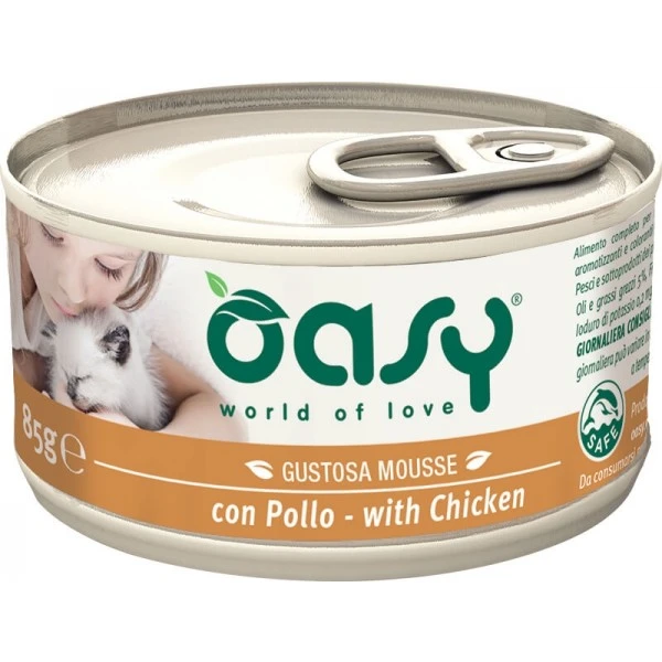 אואסי מעדן מוס בטעם עוף 85 גרם פחיות שימורים במרקם רך עדין וטעם יוצא דופן. נוצר במיוחד כדי לענות על הצרכים התזונתיים של חתלתולים. מיוצר עם מרכיבים באיכות גבוהה ללא חומרים משמרים וללא דגנים