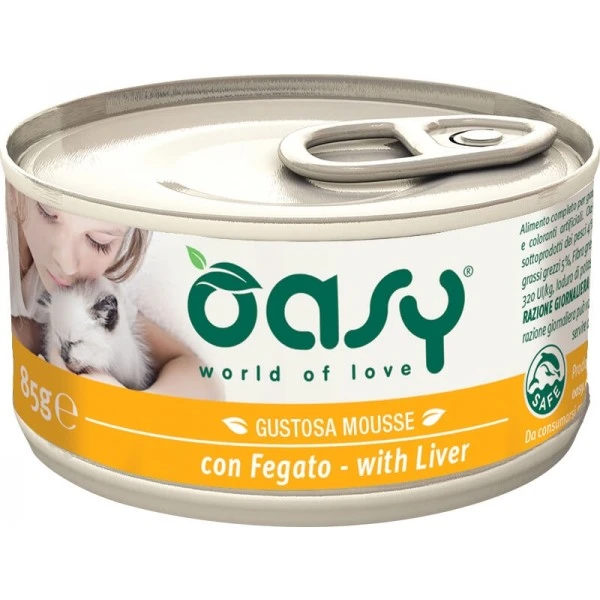 אואסי מעדן מוס בטעם כבד 85 גרם פחיות שימורים במרקם רך עדין וטעם יוצא דופן. נוצר במיוחד כדי לענות על הצרכים התזונתיים של חתלתולים. מיוצר עם מרכיבים באיכות גבוהה ללא חומרים משמרים וללא דגנים