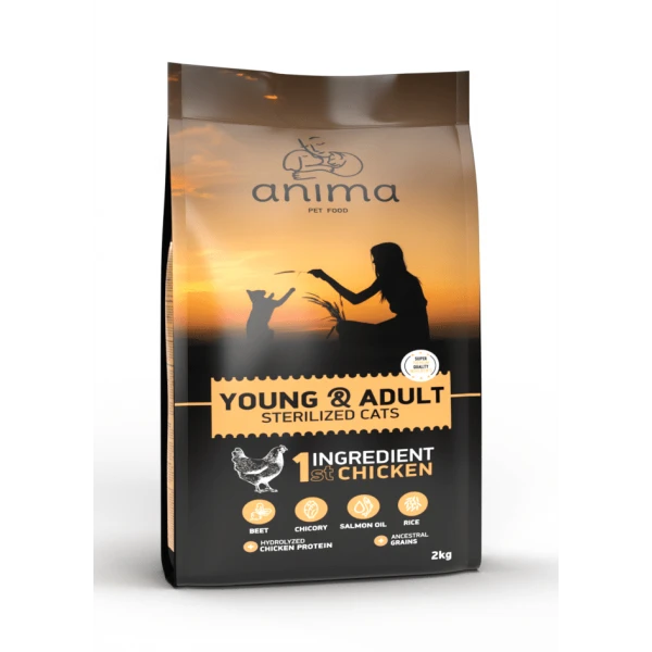 רכיבים : בשר מיובש מן החי (עוף 30%), אורז, תירס, חיטת דורום, שומן מן החי 3% (שמן סלמון 1%), עיסת סלק, עיסת עולש, חלבון עוף שעבר הידרוליזה, מינרלים, ערכים תזונתיים : חלבון: 29%, שומן: 12%, סיבים: 3,5%, אפר: 8,5%, סידן: 1,1%, זרחן: 0,8%, מגנזיום: 0.08%.